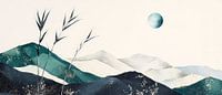Zachte heuvels smelten samen met een koel nachtlandschap, terwijl de maan de hemel zachtjes verlicht. De delicate texturen van de planten voegen een harmonieuze toets toe en geven het werk een rustgevende uitstraling. Dit kunstwerk is perfect voor de slaapkamer, creëert een ontspannen sfeer en nodigt uit om te dromen.