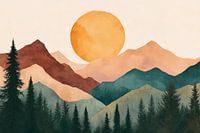 Over ‘Berglandschap met zonsopgang - aquarel’ van Poster Art Shop