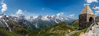 Panorama foto van besneeuwd berglandschap met wolken en diepblauwe lucht van het Großglockner massief, Hohe Tauern, Oostenrijk. Pas in de Großglockner Hochalpstrasse