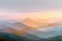 De eenvoud in vorm geeft ruimte aan interpretatie, terwijl de kleuren zorgen voor een gevoel van rust en diepte. De bergen lijken als schaduwen of herinneringen op te doemen uit een dromerige achtergrond, alsof ze zweven in een stil landschap tussen licht en lucht.