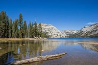 Dode boomstam in het bergmeer Tenaya in Yosemite National Park in de Verenigde Staten van Amerika