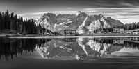 Bergmeer bij de Drie Pieken in de Dolomieten in zwart en wit . van Manfred Voss, Zwart-Wit Fotografie