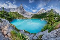 Het meer wordt als een kleine diamant omlijst door de Sorapis groep, waarin de top Dito di Dio (Vinger van God) fier afsteekt.