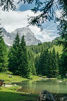 Een bergmeer in de Alpen in Oostenrijk in de zomer, groen landschap
