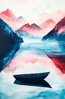 Koop dit landschapskunstwerk Bergmeer met boot - Zachte kleuren van Poster Art Shop op canvas, aluminium dibond, (ingelijste) fotoprint, behang en ArtFrame, op maat geprint in Fine-Art kwaliteit.