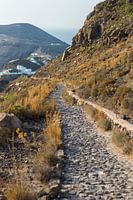 Het beroemde bergpad tussen Fira en Oia. Een 10kilometer lang voetpad langs bergen en dalen