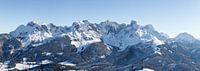 Een panorama van het gebergte tussen Opper-Oostenrijk en Salzburg, de Gosaukamm. De hoogste top is de markante Bischofsmütze. De foto is gemaakt vanuit een heteluchtballon boven het Lammertal.