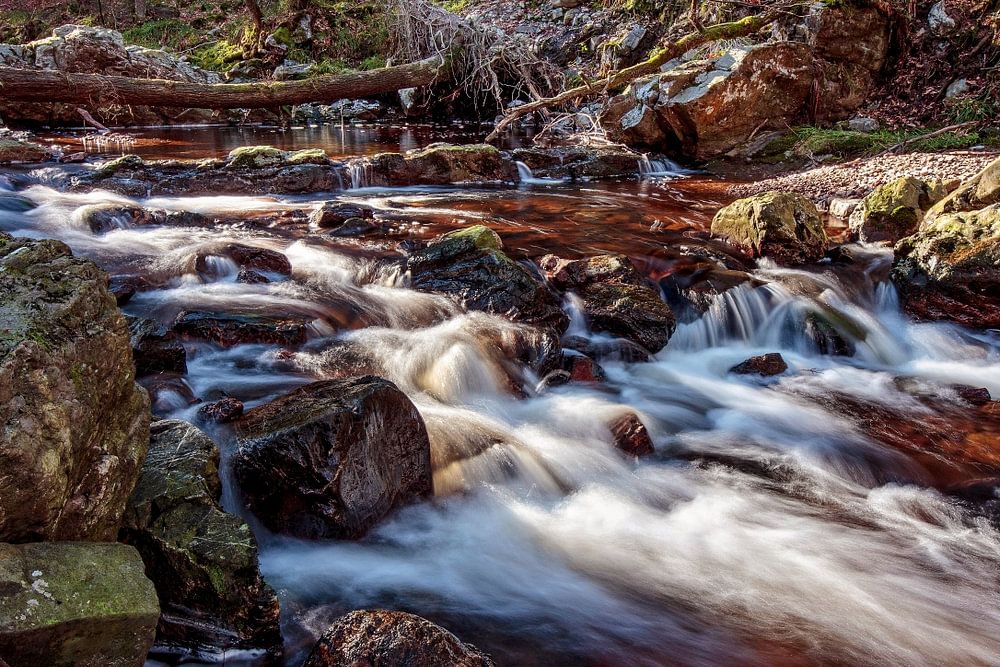 In de Ardennen zijn een aantal bergriviertjes waaronder de Ninglinspo en deze Hoëgne gevoed door regenwater die stromen door een landschap met rotsblokken wat het geheel een "prehistorisch" karakter geeft. Het meest aantrekkelijke is de herfstperiode omdat de bladeren de kleurenpracht versterken en er meer zonlicht de bodem bereikt. Het gebruik van een Neutral Density filter ten behoeve van een lange sluitertijd laat het water er romig uitzien.