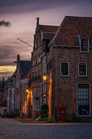 De prachtige Bergstraat in Deventer tijdens de zonsondergang.