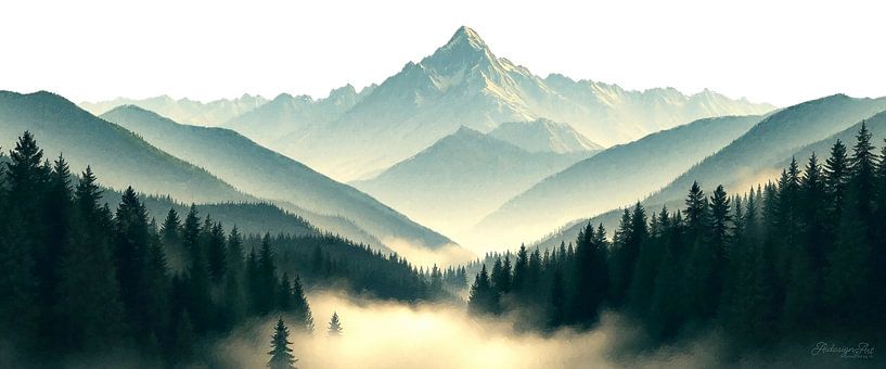 Over ‘Bergtoppen in een zee van mist’ van AidasignArt