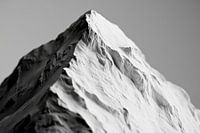 Een majestueuze piek van glinsterende witte en grijze tinten rijst trots de lucht in. De delicate structuren vangen het licht op een fascinerende manier en geven het motief een indrukwekkende diepte. Dit kunstwerk past perfect in een moderne woonkamer, waar het dient als een statement van avontuurlijkheid en natuurlijke schoonheid.