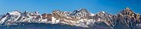 Nadat je met de skytram in Jasper Nationaal Park omhoog gaat heb je een gigantisch uitzicht over de Rocky Mountains in Canada. Werkelijk spectaculair! Dit is een panorama van een deel van het uitzicht. Met onmiskenbaar Pyramid Mountain rechts.