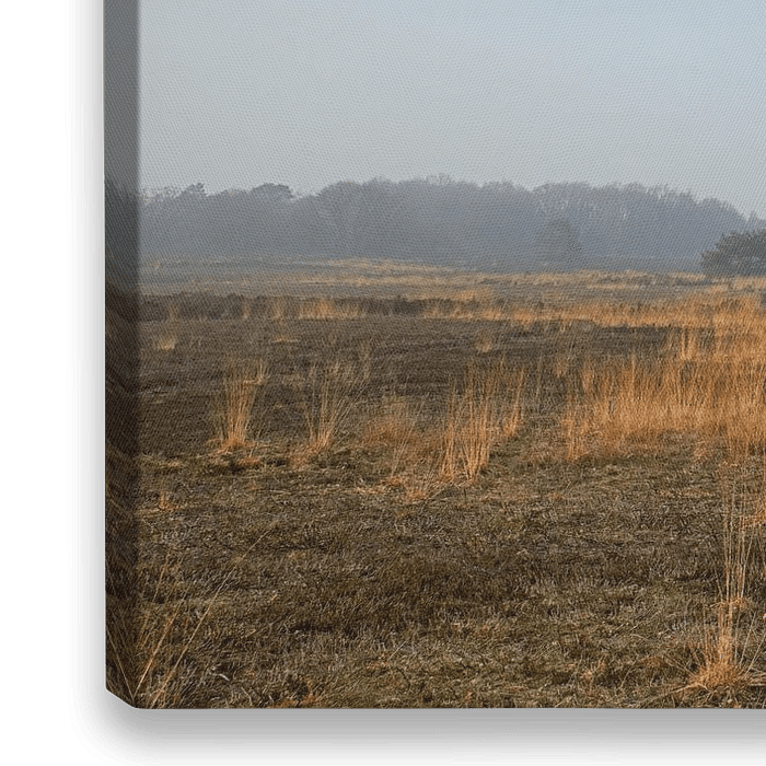 Het was een sfeervolle nevelige ochtend op de laatste dag van februari. Door de wazige ochtendzon lichtte het gras prachtig op rond de berk. De nevel zorgt voor extra dieptewerking op het heideveld. Foto genomen op de heide tussen Vierhouten en Elspeet.