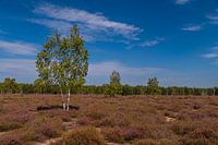 Individuele bomen, meestal berken, staan als solitairen midden op de heide.