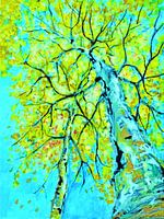 Berkenbomen abstract geschilderd met acrylverf en digitaal bewerkt tot Lente, Zomer, Herfst en Winter. De bladeren verkleuren met het jaargetij. Leuk om ze naast elkaar op te hangen.