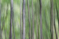Berken bomen bij Loch Lomond, Schotland. Door de bewegende camera krijgen deze zilver kleurige stammen van de berken een abstract aanzien.