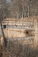 In "Berkenbrug Reflecties - Rustieke Waterweg" wordt de kijker meegenomen naar een vredige plek waar een eenvoudige houten brug over een kalme waterloop ligt. De winterse berken, met hun kenmerkende witte schors, staan statig op de achtergrond en reflecteren in het water, waardoor een natuurlijk symmetrisch kunstwerk ontstaat. Het riet langs de oevers, badend in het zachte licht, voegt warmte toe aan de scène en benadrukt de rust en de schoonheid van het seizoen. Dit beeld is een viering van de natuurlijke eenvoud en zou een gevoel van landelijke charme aan elke ruimte geven.