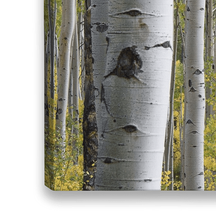 Een bijna abstracte foto van prachtige witte berkenstammen die parallel naast elkaar in het berkenbos staan. Op de achtergrond zijn de eerste lenteverkleuringen van de bladeren te zien. Prachtig op groot formaat!