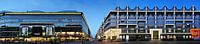 Berlijn Friedrichstrasse, Quartier 206 en 207. Moderne architectuur in de Berlijnse Friedrichstrasse van de architecten Jean Nouvel en New Yorkers Pei, Cobb, Freed & Partners. Lineair panorama samengesteld uit een reeks multi-perspectief foto's.