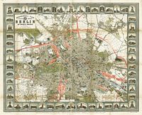 Oude stadsplattegrond uit 19e eeuw van de Duitse hoofdstand Berlijn. De vintage plattegrond laat in detail de wegen, spoorlijnen van de trein en bezienswaardigheden zien.
