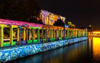 Berlijn - Oude Nationale Galerij en zuilengangen op de Spree in een bijzonder licht, ter gelegenheid van een lichtfeest in de Duitse hoofdstad