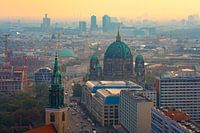 De Mariakerk, de Dom van Berlijn en de Potsdamer Platz in de hoofdstad bij zonsondergang