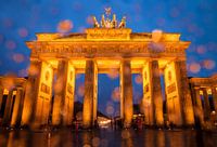 Berlijn met Brandenburger Tor, Duitsland in de regen. De foto is gemaakt tijdens de avond schemering. De druppels versterken de sfeer van deze foto van dit monument. De Brandenburger Tor is één van de belangrijkste toeristische attracties in de hoofdstad van Duitsland.