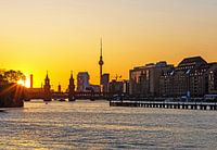 Koop de foto Berlijnse skyline Mediaspree van Frank Herrmann als print op canvas, aluminium dibond, (ingelijste) fotoprint, behang en ArtFrame. Voor jou op maat geprint in Fine-Art kwaliteit.