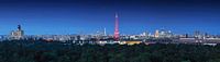 De Berlijnse skyline op het blauwe uur, met radio- en televisietoren.