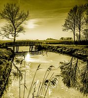 Avondlicht over het Friese platteland nabij Berlikum in duotone