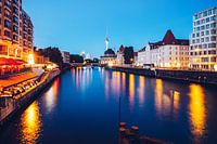 Abenddämmerung über Berlin: Ein Blick von der Weidendammer Brücke / Friedrichstrasse über die Spree in Richtung Museumsinsel und Fernsehturm.