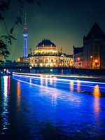 Berlin bei Nacht: Ein Blick über die Spree auf das Bode-Museum und die Museumsinsel.