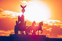 Ein Berliner Wahrzeichen im Gegenlicht des Sonnenuntergangs: Die Quadriga mit der Siegesgöttin Viktoria auf dem Brandenburger Tor.