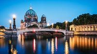 Blaue Stunde in Berlin, ein Blick über die Spree auf die Museumsinsel.