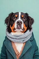 Met zijn majestueuze driekleurige vacht en zachte, expressieve ogen straalt deze Berner Sennenhond charmante elegantie uit. Gewikkeld in een zachte sjaal en stijlvolle vacht ziet hij eruit als een modebewuste metgezel die klaar is om de wereld te verkennen en harten te veroveren. Een beeld vol passie en warmte!