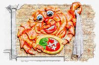 Digitaal aquarel van de Berregse krab, het carnavalssymbool van Bergen op Zoom (Brabant), welke tijdens de vastenavend wordt omgedoopt tot Krabbegat (vandaar de krab).