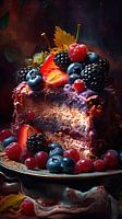 Berry Delight - Dit schilderij toont een prachtige, realistische fotografie van een heerlijke bessentaart. De kleurrijke achtergrond zorgt voor een levendige en vrolijke sfeer, terwijl de gedetailleerde portrettering van de taart en de intrigerende details ervoor zorgen dat je bijna de geur van de bessen kunt ruiken. De rijke kleuren…