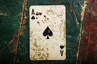 Dit unieke kunstwerk straalt een gevoel van mysterie en intrige uit. Het toont een gehavende speelkaart, een aas van schoppen, bedekt met subtiele, maar opvallende vlekken en texturen die de verbeelding prikkelen. De kaart lijkt gebruikt, bijna beschadigd, alsof ze een lange reis heeft meegemaakt. De combinatie van gedempte kleuren met de opvallende zwarte schoppen maakt dit ontwerp visueel intrigerend. Dit werk is ideaal voor liefhebbers van moderne kunst die houden van een vleugje mysterie in hun interieur. Hang het in een kantoor, slaapkamer of een andere ruimte waar je een vleugje eigentijdse stijl en karakter wilt toevoegen. Het is een perfecte keuze voor wie van gedurfd, maar toch subtiel houdt.