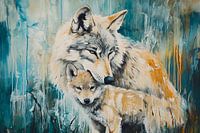 Dit prachtige ontwerp toont een moederwolf die liefdevol en beschermend bij haar welp staat. Het gebruik van expressieve penseelstreken en een rustgevende kleurencombinatie van blauw, beige en oranje zorgt voor een warme en serene uitstraling. Deze kunst is perfect voor dierenliefhebbers en mensen die een betekenisvol kunstwerk zoeken dat kracht en liefde uitstraalt. Ideaal om een kamer meer karakter te geven, zoals een woonkamer, kantoor of slaapkamer. Het ontwerp past in zowel moderne als klassieke interieurs en biedt een gevoel van verbinding met de natuur.