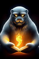Stap in het rijk van mysterie met Guardian of the Sacred Flame, een indrukwekkende digitale collectible die rauwe kracht combineert met arcane wijsheid. Dit lichtgevende beest, met zijn doordringende gouden ogen en hemelse gloed, houdt een oude tome vast waaruit de essentie van kennis brandt als een hemels vuur.