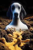 In een surreëel rijk waar de werkelijkheid buigt, waakt een kolossale waakhond over een rivier van gesmolten, vloeibaar lijkende eenden die uit de aarde zelf ontspringen. Het schrille contrast tussen de waakzame, goddelijk uitziende figuur en de rivier van vloeibaar goud creëert een angstaanjagende maar betoverende balans tussen macht…
