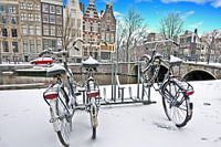 Koop de foto Besneeuwd Amsterdam in de winter in Nederland van Eye on You als print op canvas, aluminium dibond, (ingelijste) fotoprint, behang en ArtFrame. Voor jou op maat geprint in Fine-Art kwaliteit.