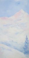 Een kleurrijk digitaal schilderij van een berglandschap. Het werk geeft een dromerige en klassieke uitstraling aan uw interieur!