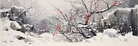 Een kleurrijk digitaal schilderij van een besneeuwd landschap. Het werk geeft een dromerige en klassieke uitstraling aan uw interieur!