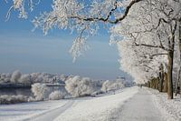 Besneeuwd Osterdeich met Weser, Bremen, Duitsland
