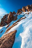Koop dit landschapskunstwerk Besneeuwd rotslandschap van Poster Art Shop als print op canvas, aluminium dibond, (ingelijste) fotoprint, behang en ArtFrame. Voor jou op maat geprint in Fine-Art kwaliteit.