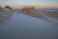 Besneeuwde Zeeuwse duintopppen langs het strand van Oostkapelle in de winter