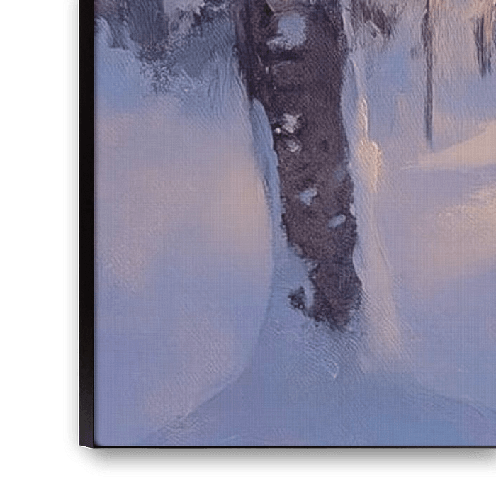 Details: winterlandschap schilderij, blokhut schilderij, sneeuw schilderij, kerstschilderij, natuur schilderij, landschap schilderij, bos schilderij, seizoen schilderij, avondlicht schilderij, vakantie schilderij