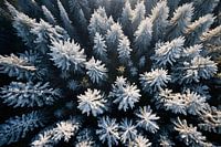 Besneeuwde bomen in winterse boslandschap van Art & Soul Creations