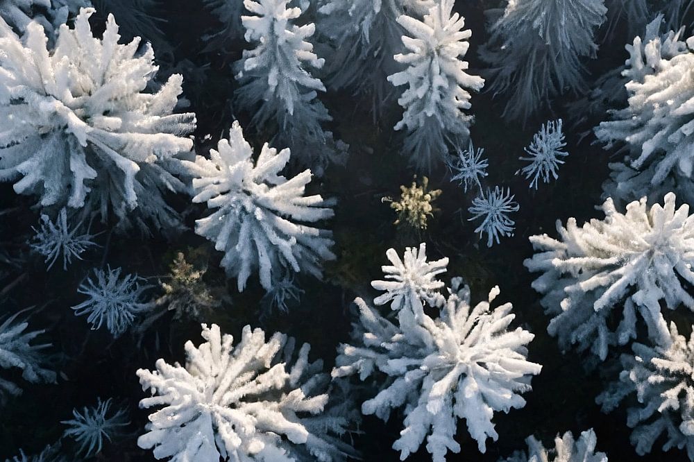 Deze prachtige luchtfoto van een winters bos biedt een adembenemend uitzicht op met sneeuw bedekte bomen. De sneeuw creëert een monochrome symfonie van wit en grijs, die een gevoel van serene rust uitstraalt. Deze foto is perfect voor liefhebbers van natuur en winterlandschappen. Het ontwerp past uitstekend in een moderne woonkamer of slaapkamer en brengt de rustige en koele sfeer van een besneeuwd bos in je interieur. Of je nu een vleugje winterwonderland aan je huis wilt toevoegen of gewoon wilt genieten van de kalmerende aanblik van besneeuwde bomen, dit ontwerp is een stijlvolle en tijdloze keuze.